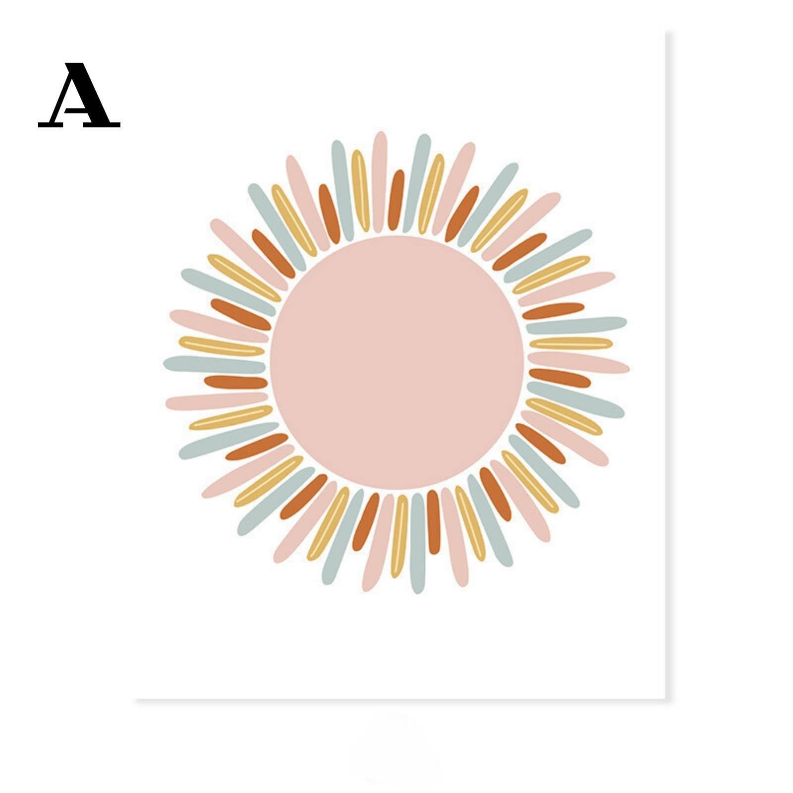 インテリア アート ポスター 20×30cm フレームなし 虹 雲 太陽 レインボー ピンク 韓国 インテリア A4 キッズ ルーム 子ども部屋 子供部屋